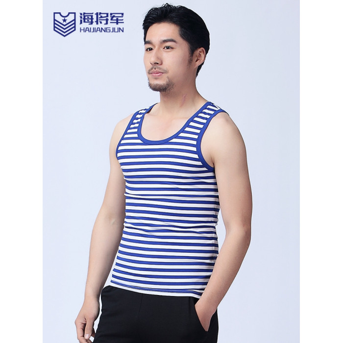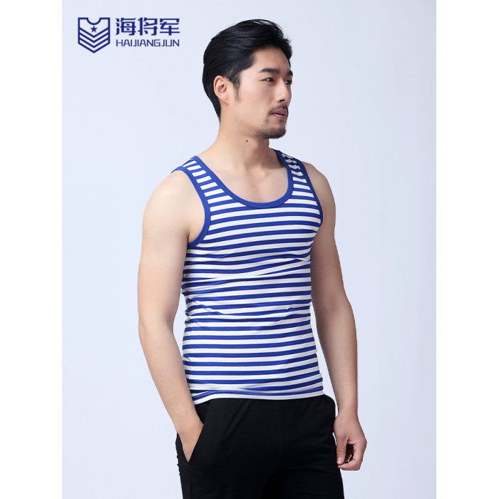 夏季新款海魂衫坎袖 絲光棉藍白條紋背心無袖打底衫運動裝