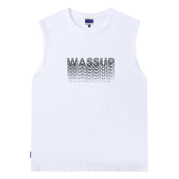 WASSUP重影背心男士寬松夏季潮牌ins純棉健身運動無袖坎肩打底衫