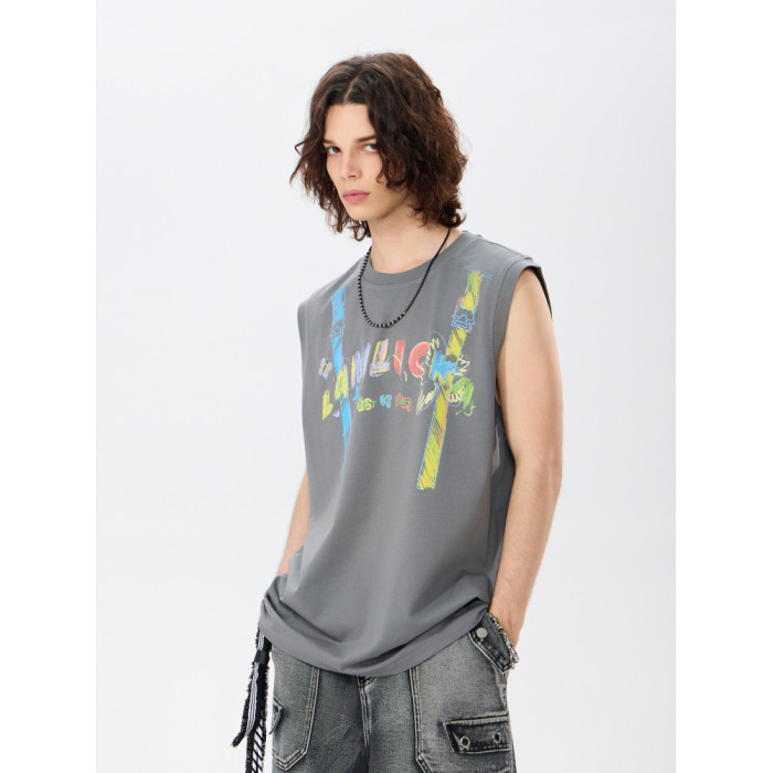 LAMLICKA灰色美式背心女潮牌夏季寬松無袖白色純棉坎肩上衣t恤女