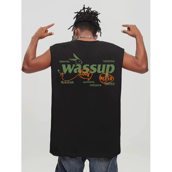 WASSUP美式重磅純棉坎肩背心男夏季新款潮流寬松潮牌街頭無袖上衣