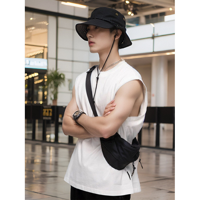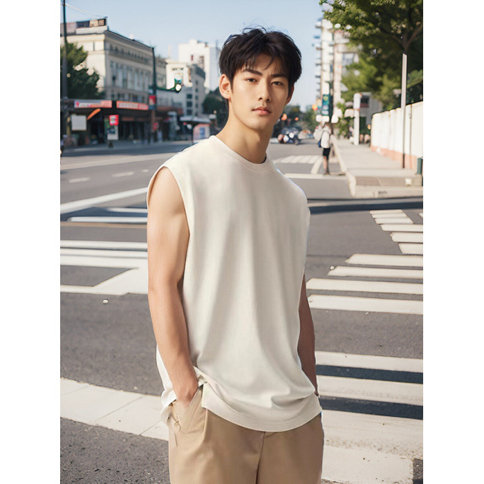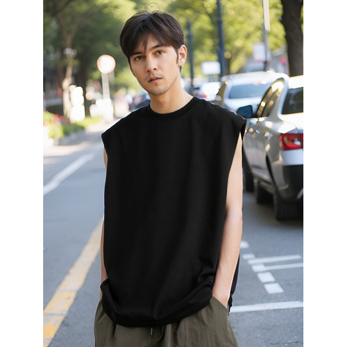 日系重磅純棉背心男潮牌夏季寬松運動健身坎肩休閒無袖t恤男汗衫