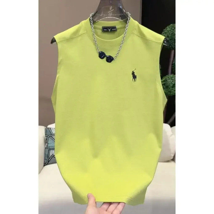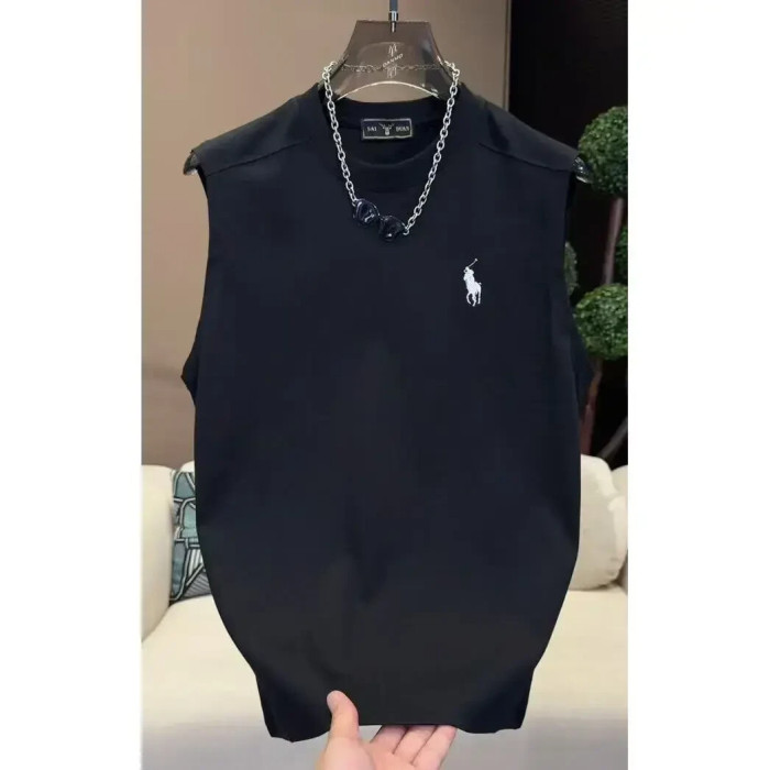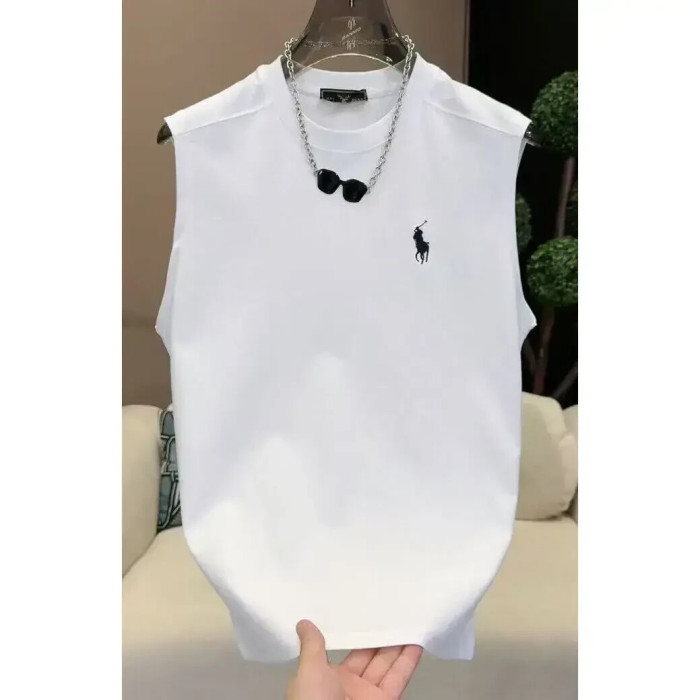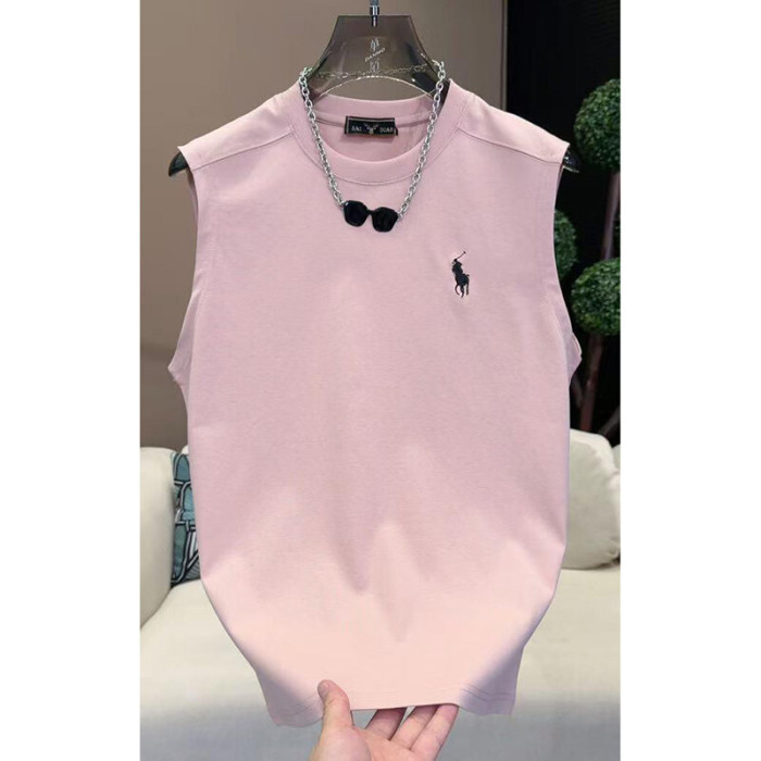 夏季新款潮牌戰馬刺綉無袖背心男純色輕奢時尚坎肩t恤上衣服潮流