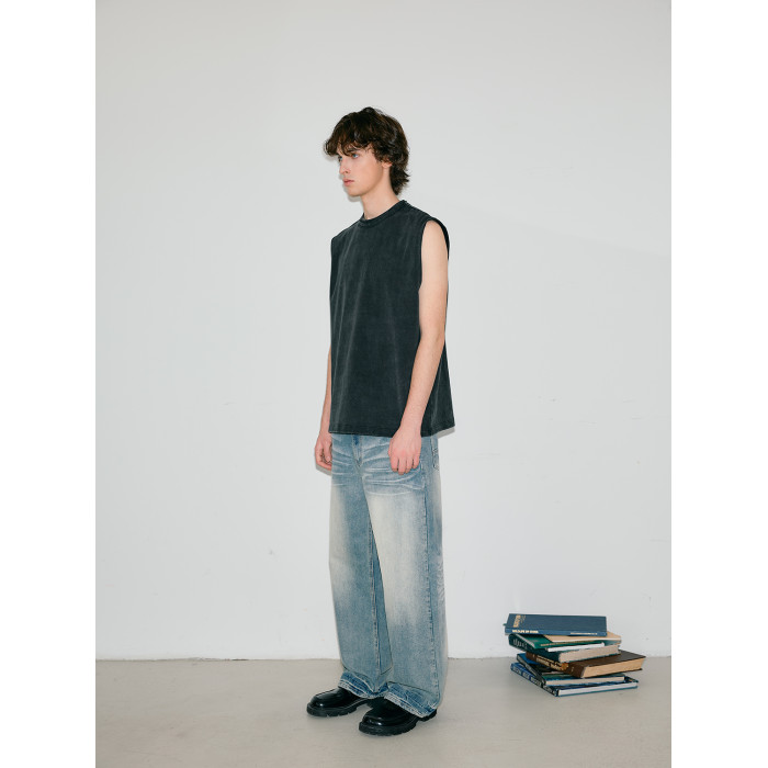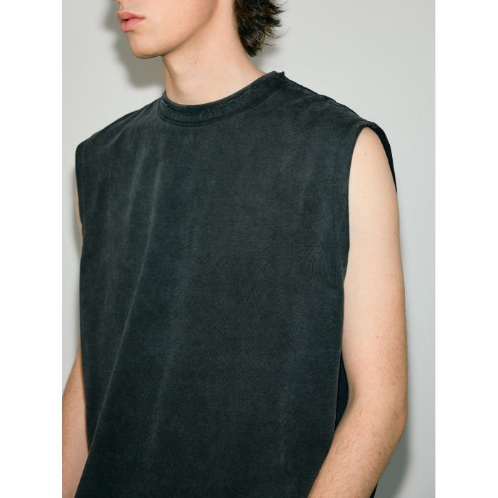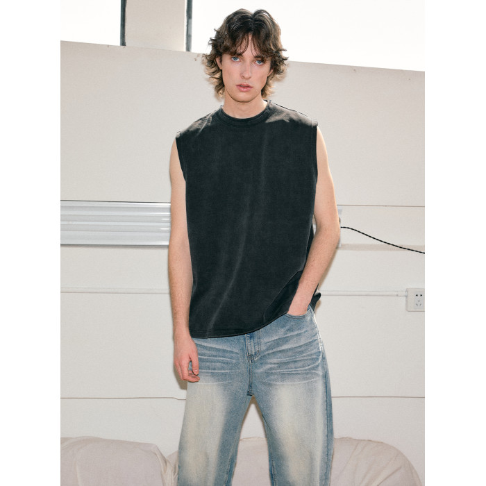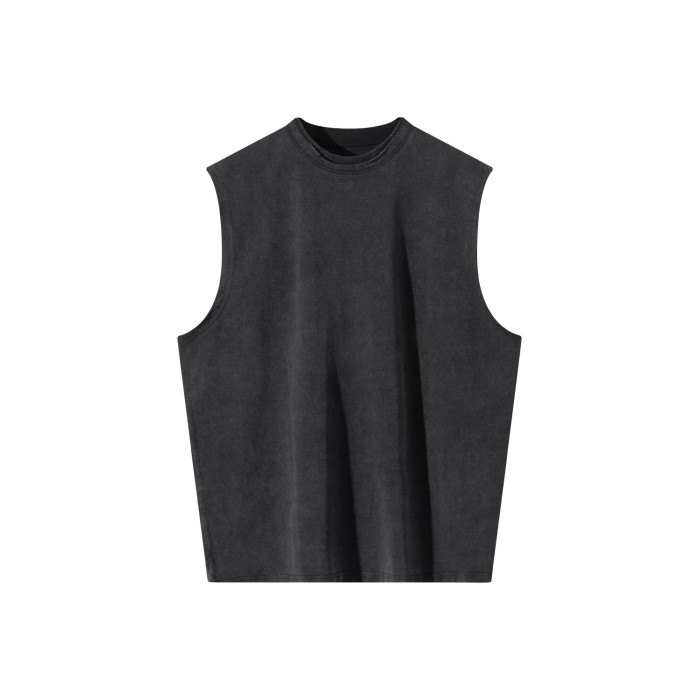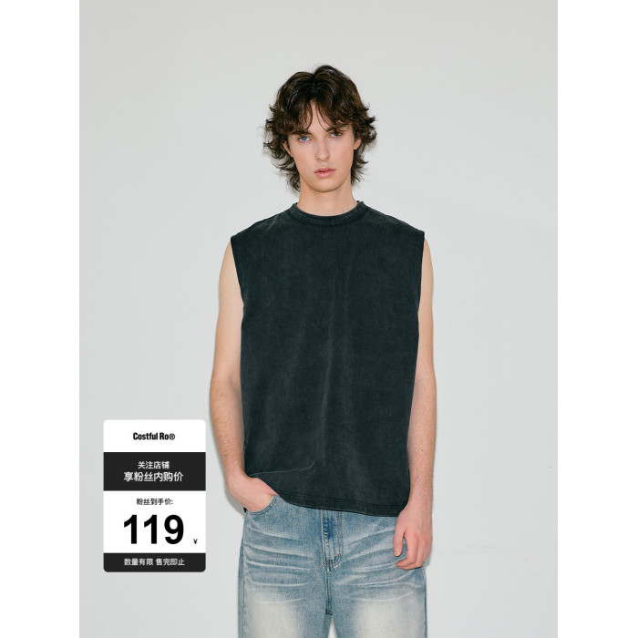 Costful Ro活性炒色全棉針織坎肩背心 雙層毛邊領300g重磅短袖T恤
