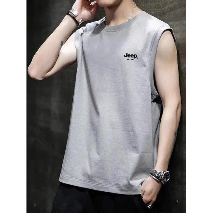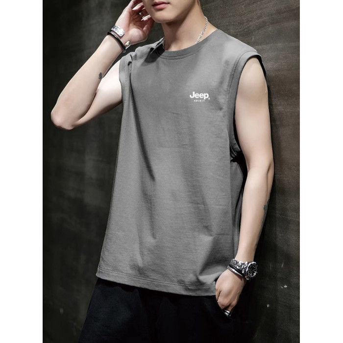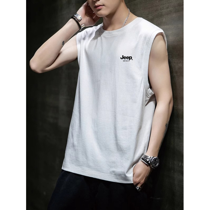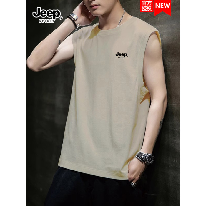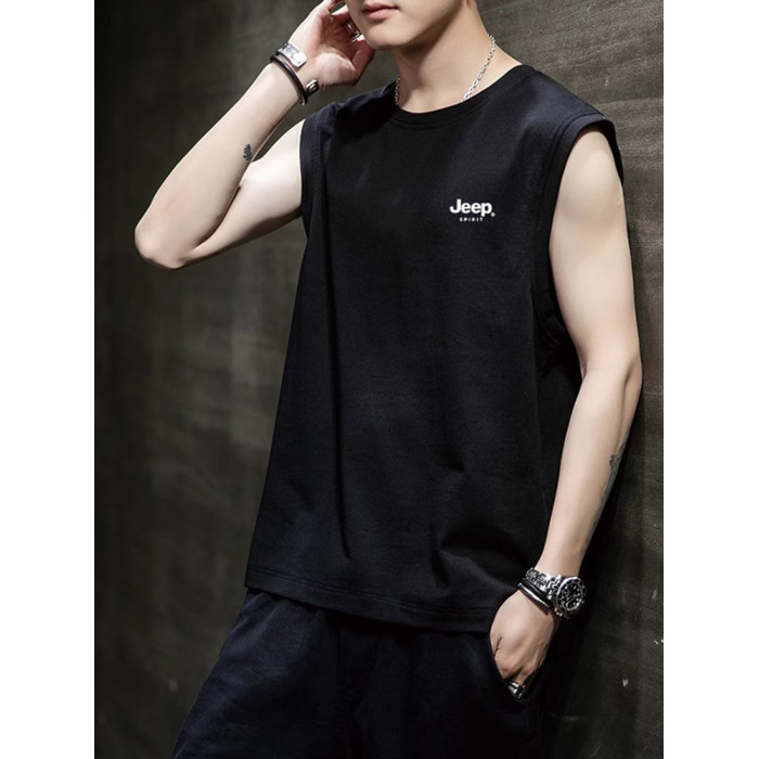 JEEP吉普夏季純棉背心男百搭寬松健身無袖t恤冰絲坎肩籃球打底衫