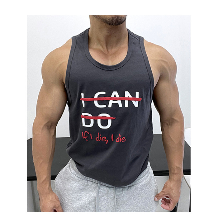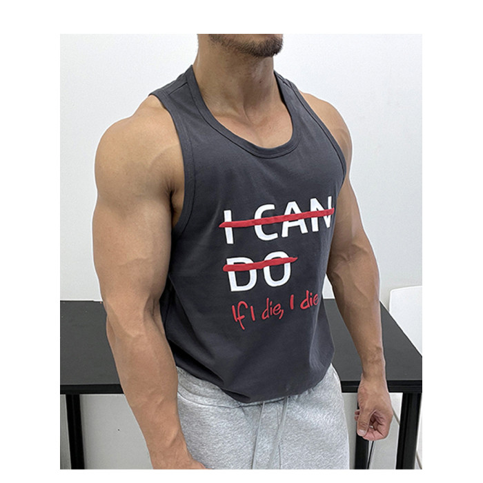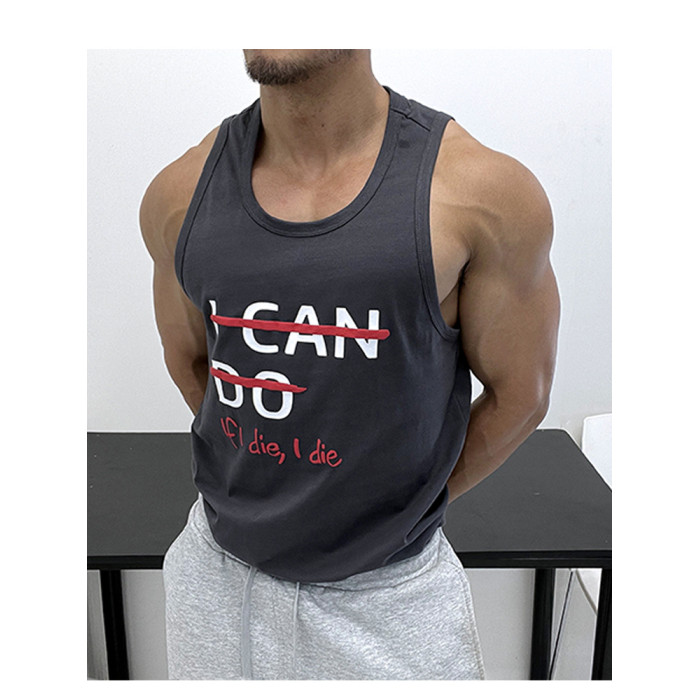 純棉好面料背心無袖T恤肌肉男潮體育生slogen修身運動海灘顯壯ins