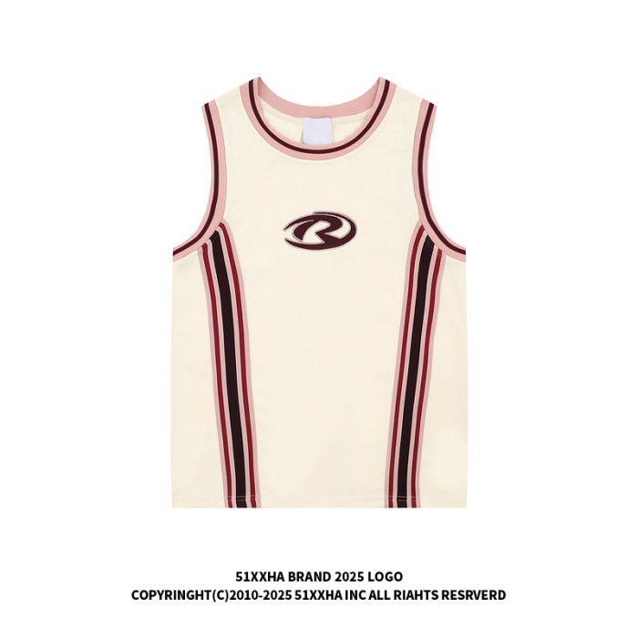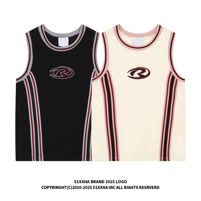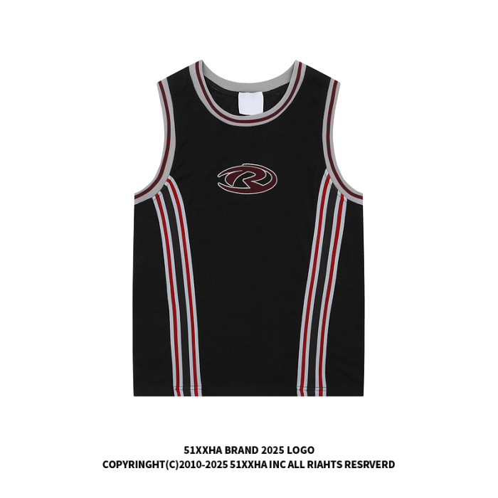 51嘻哈潮牌復古拼接刺綉背心男款夏季街頭hiphop運動籃球無袖T恤