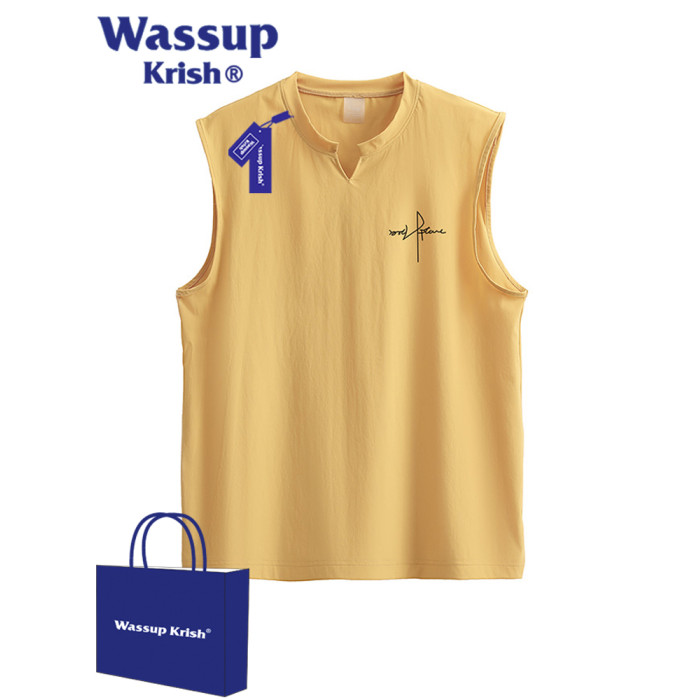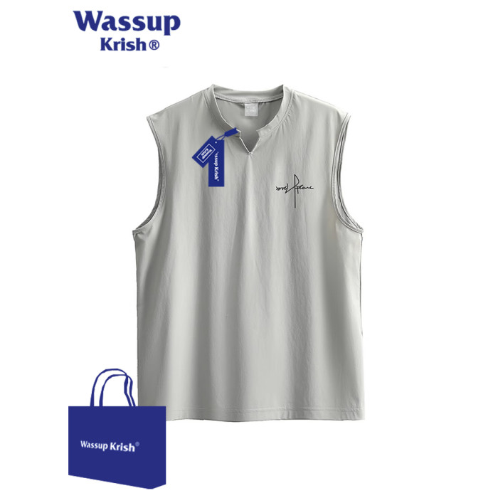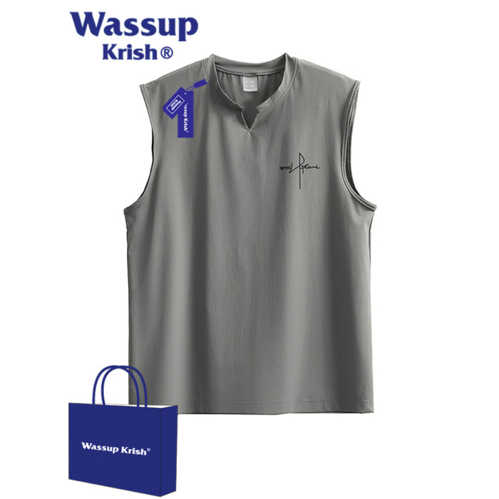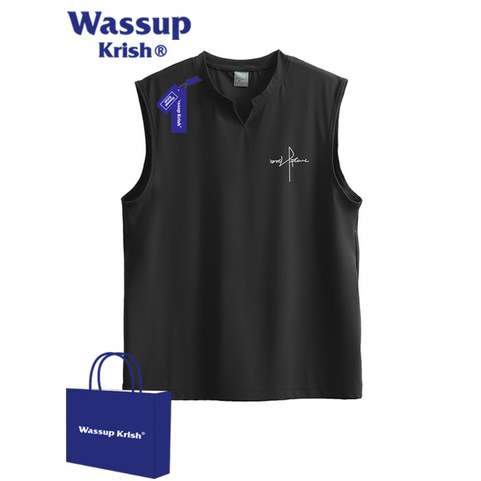 WASSUP KRISH背心男夏季2025新款寬松無袖t恤冰絲速乾運動V領上衣