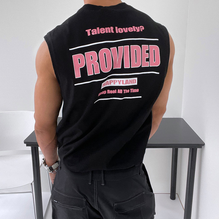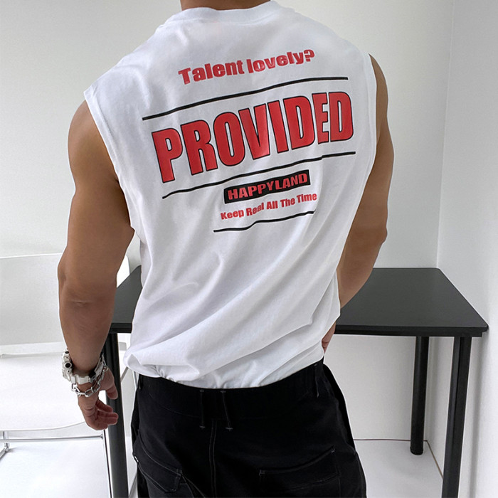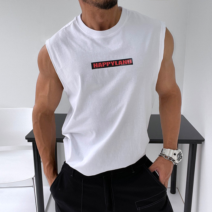 廓形時髦顯瘦!純棉修身簡約slogen全棉無袖T恤背心內搭打底美式