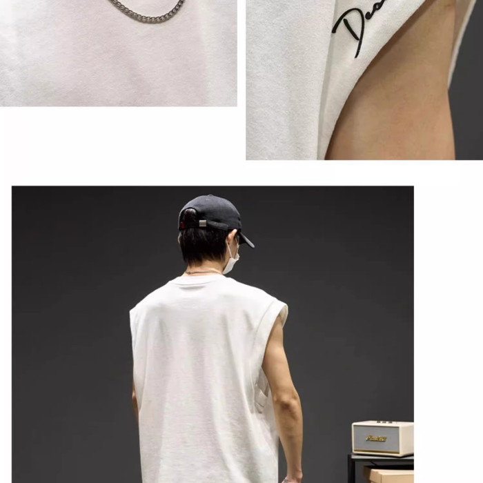 倉石一樹美式背心男夏季ins籃球運動寬松無袖t恤男生健身外穿坎肩
