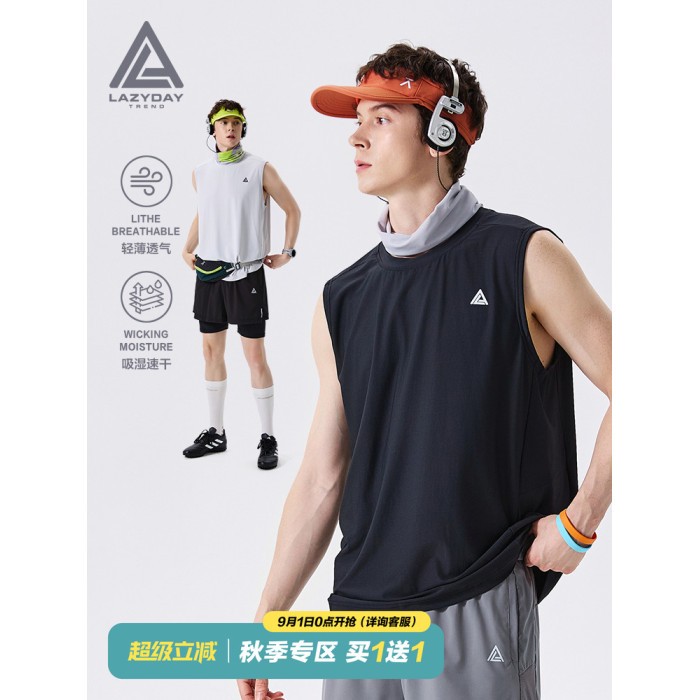 LAZY DAY戶外吸汗速乾運動背心男女夏季輕薄透氣涼感健身無袖T恤