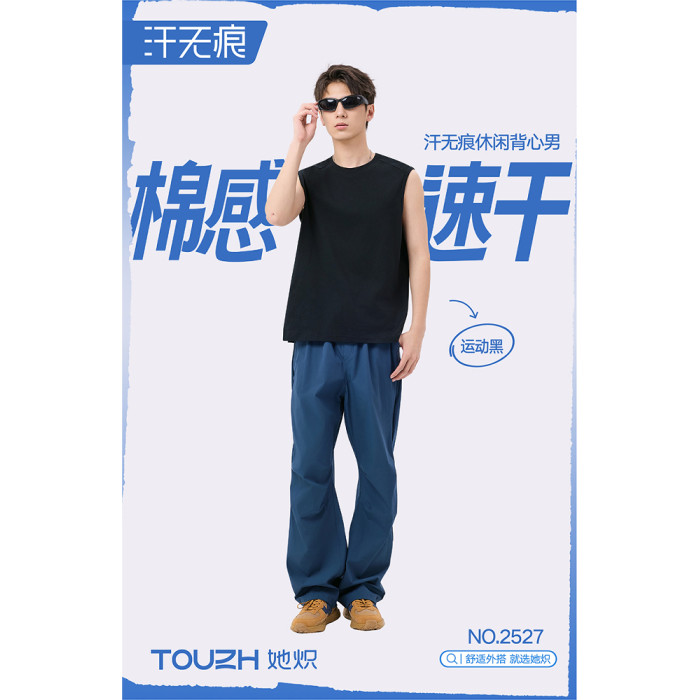 她熾2527汗無痕休閒背心男士寬松無袖汗衫打籃球運動坎肩T恤夏季