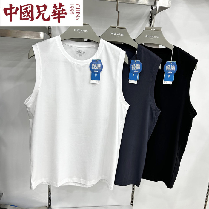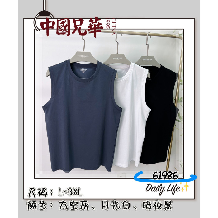 兄華男士寬肩背心夏季薄款棉背心純色跨欄運動衫薄款實體款61986