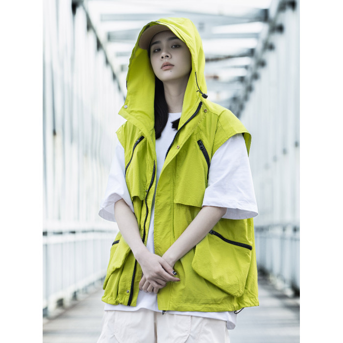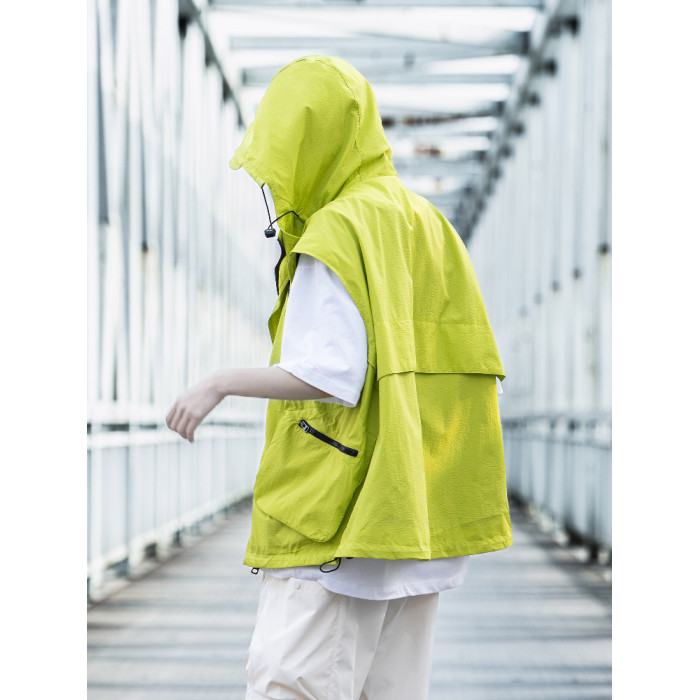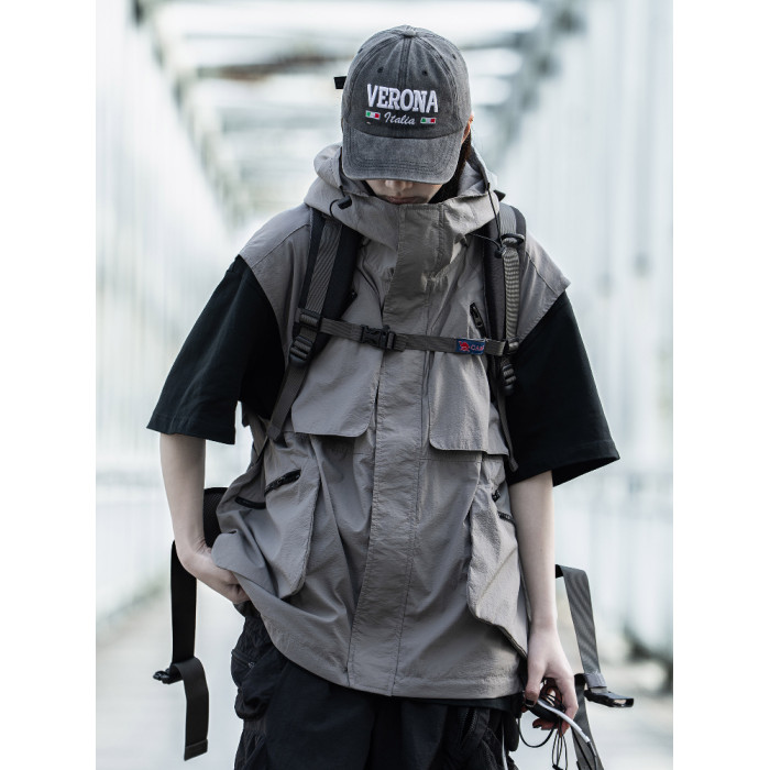 AOGZ戶外潮牌機能風連帽馬甲男女夏季新款多口袋工裝無袖坎肩外套