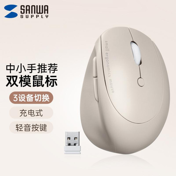 日本山業Sanwa人體工學無線藍牙滑鼠充電握式男女辦公設計遊戯