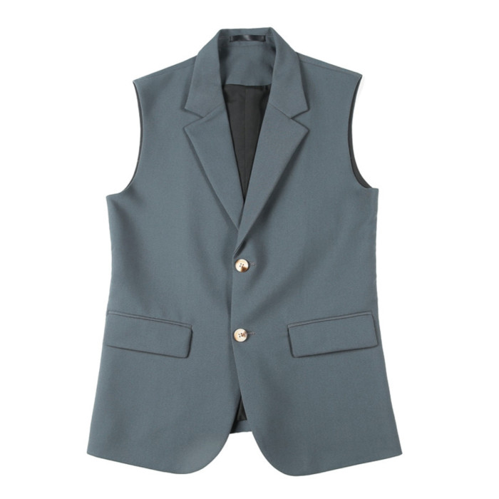 無袖西裝馬甲套裝男夏薄款痞帥潮流修身西服外套髮型師潮牌兩件套
