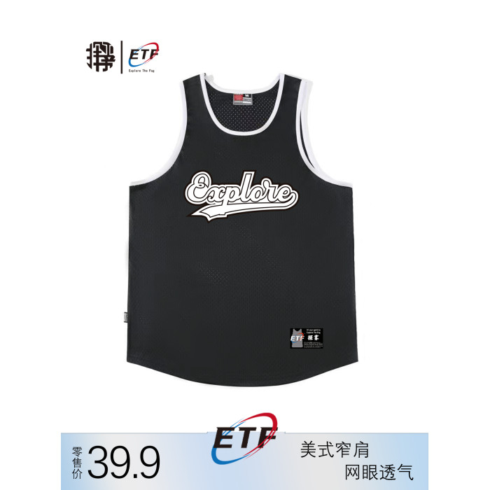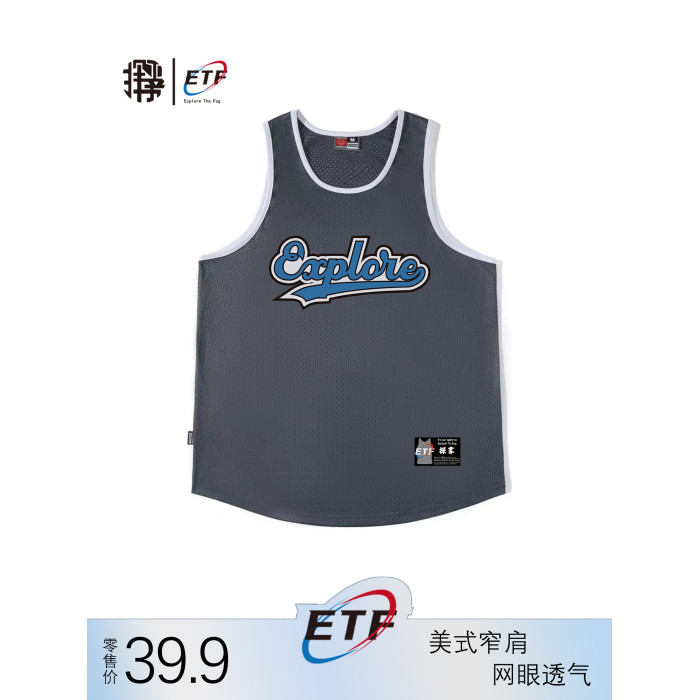 探霧ETF籃球背心美式窄肩男網眼透氣運動休閒寬松夏季訓練跑步t恤