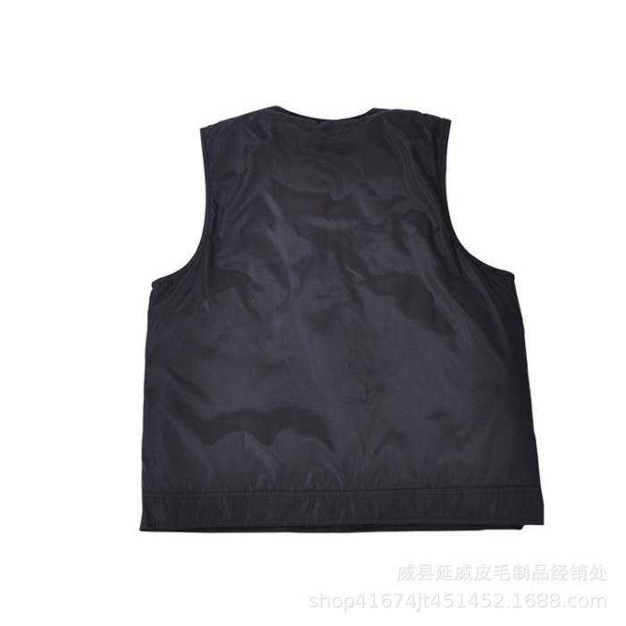 中老年冬季羊毛坎肩真羊皮加絨真皮馬甲男皮毛一體保暖爸爸裝