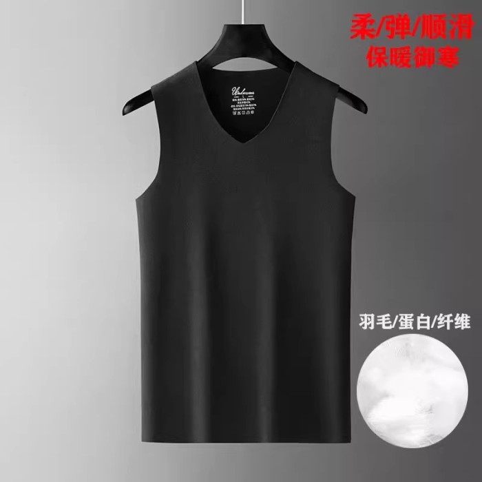 羽毛蛋白保暖背心v領背心打底衫大碼男德絨坎肩冬無痕自髮熱潮男