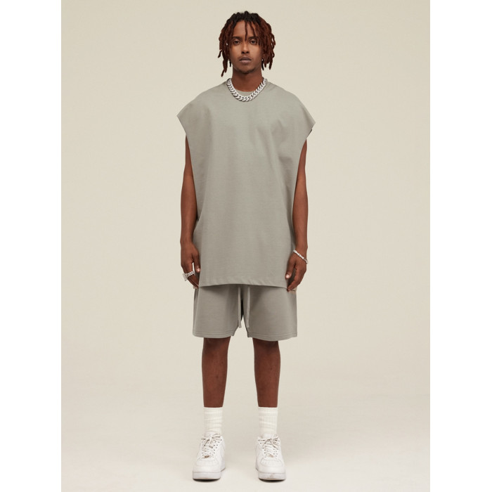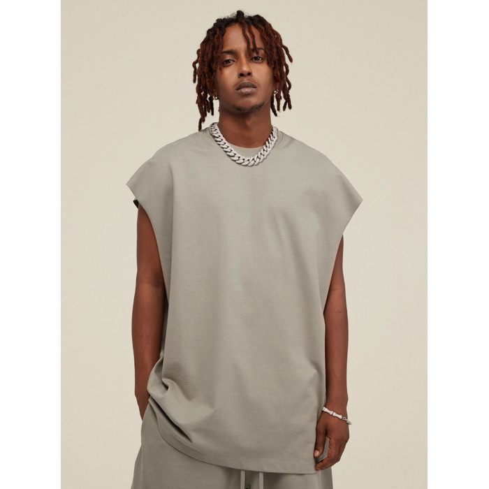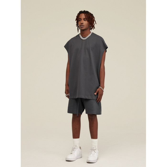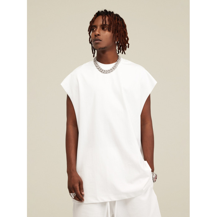 美式街頭復古高街嘻哈寬松重磅300g坎肩寬肩圓領無袖T恤背心男