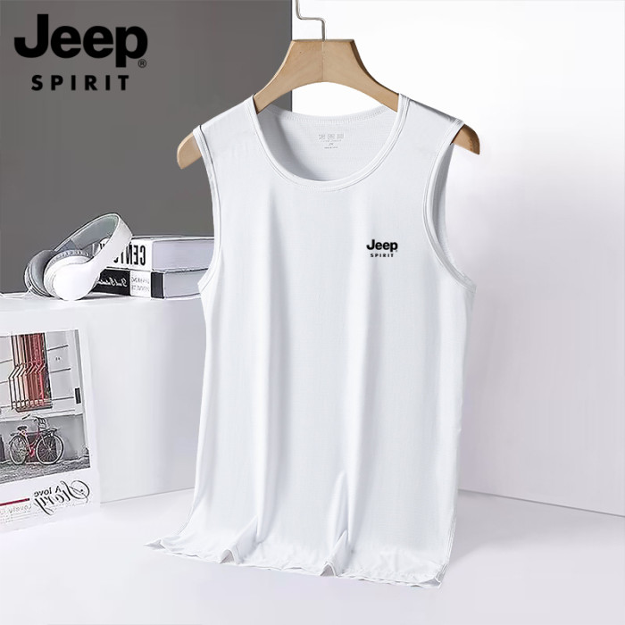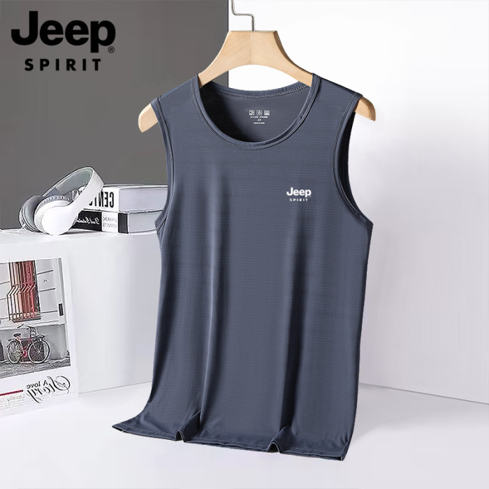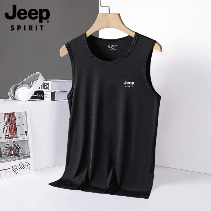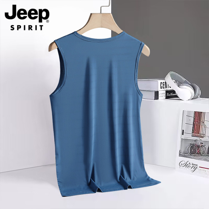 JEEP吉普速乾背心男士夏季休閒冰絲汗衫大碼運動健身無袖坎肩T恤
