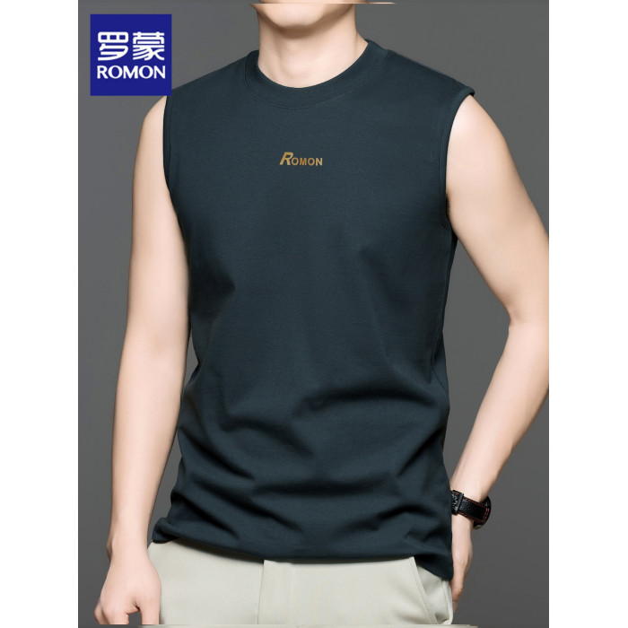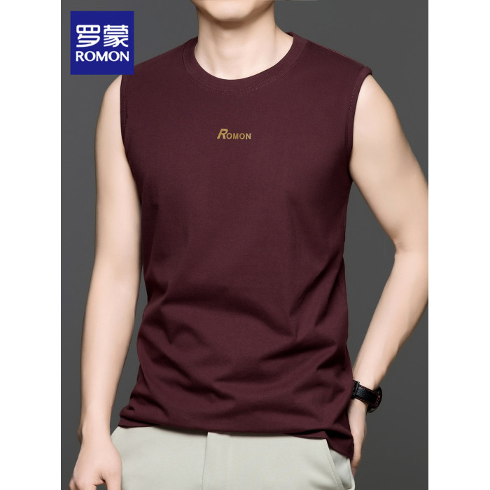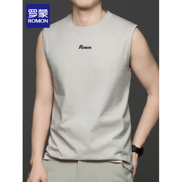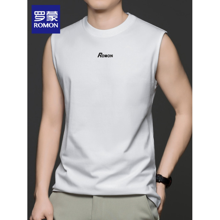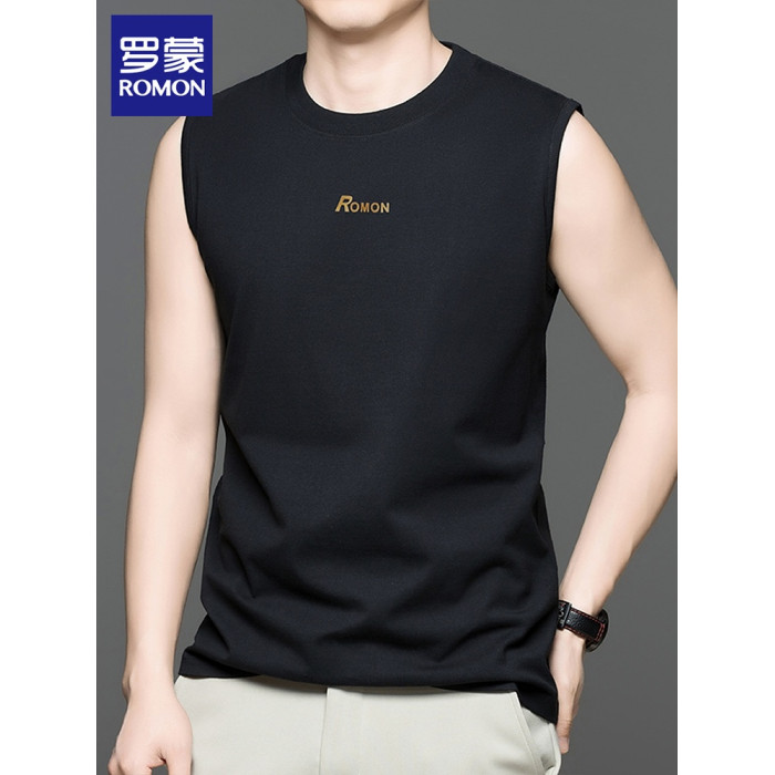 羅矇純棉背心男士新薄款休閒坎肩上衣2025年夏季印花無袖t恤衫男