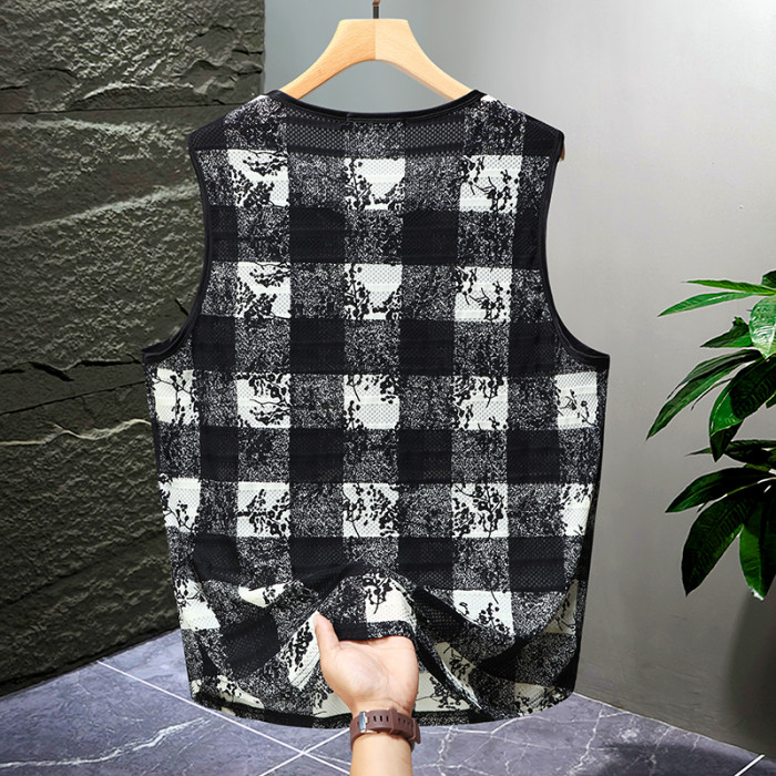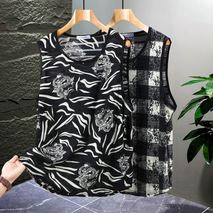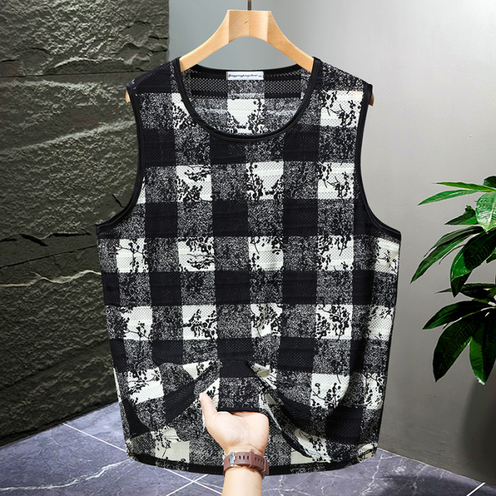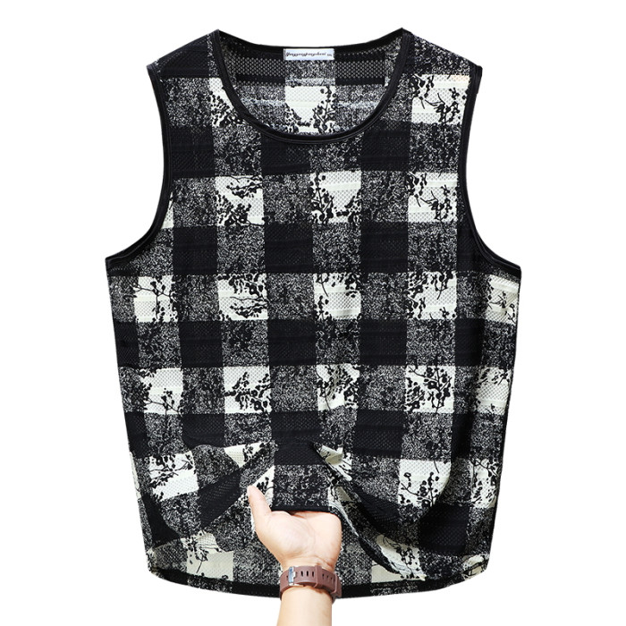 350斤冰絲潮流大碼背心男速乾透氣無袖T恤加肥加大鏤空健身短袖夏