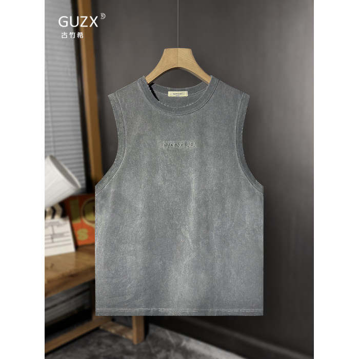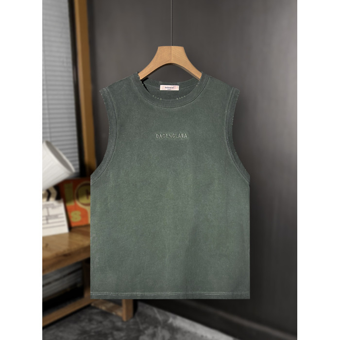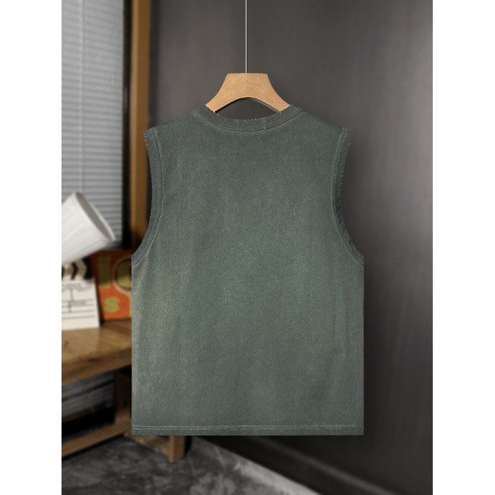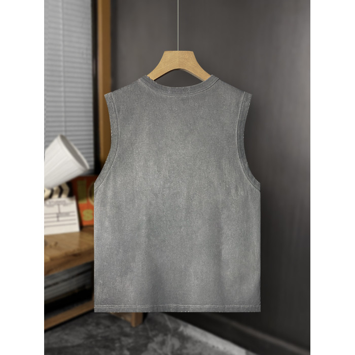 美式痞帥無袖字母背心t恤男士2025夏季外穿純棉圓領坎肩運動汗衫
