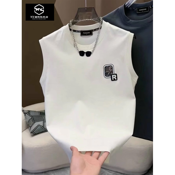 NY潮牌無袖坎肩男士2025夏季新款印花純棉背心運動休閒短袖T恤薄