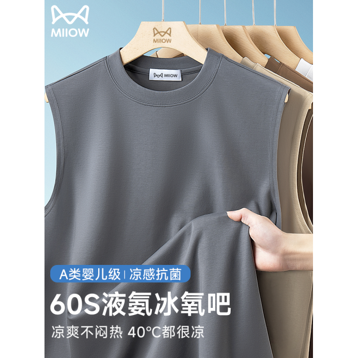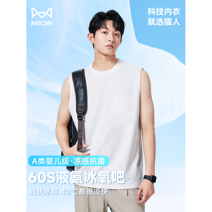 貓人液氨冰絲涼感背心男2025夏季新款無袖寬松吸汗運動坎肩t恤潮