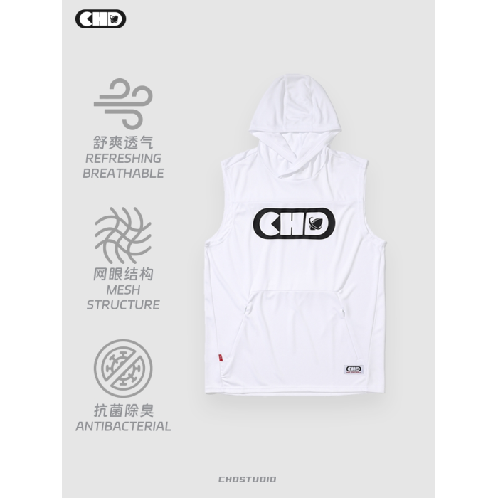 CHDFOOTBALL夏季男士連帽背心速乾無袖休閒運動坎肩籃球冰絲打底