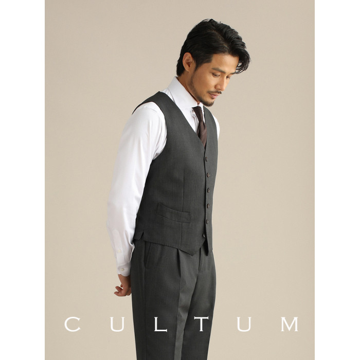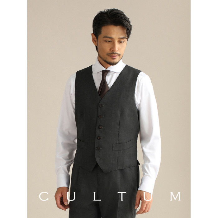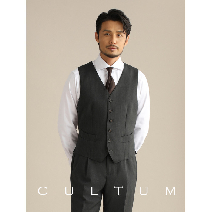 CULTUM 精紡60羊毛單排六粒釦西裝馬甲男修身V領免燙紳士西服馬夾