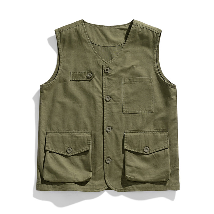 夏季純棉美式工裝馬甲多口袋男士戶外釣魚路亞夾無袖復古休閒坎肩
