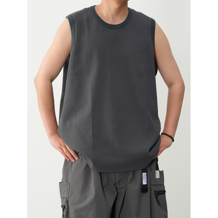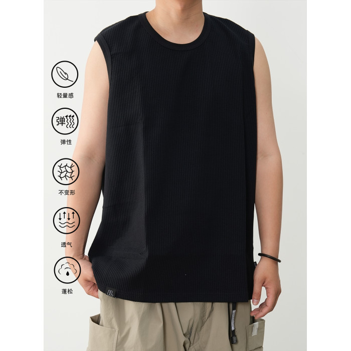 NESSTTU 25新品日系休閒復古百搭寬松透氣華夫格純色運動背心