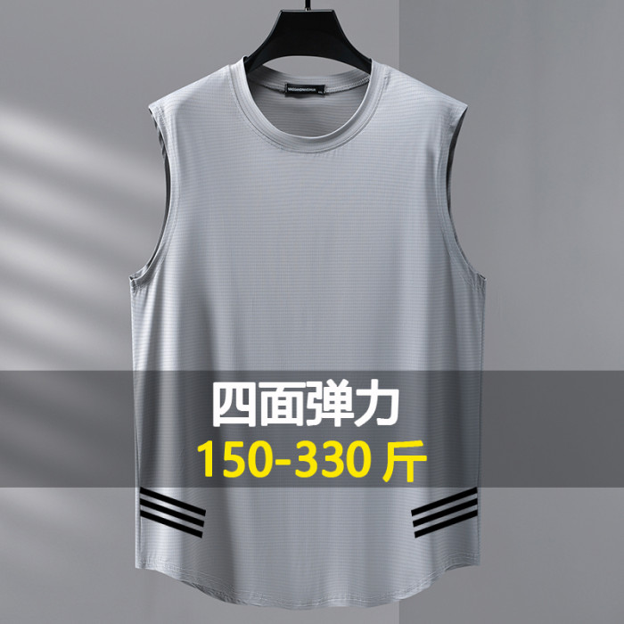 輕奢大碼冰絲背心男運動速乾無袖T恤輕薄款胖子加肥加大汗衫300斤