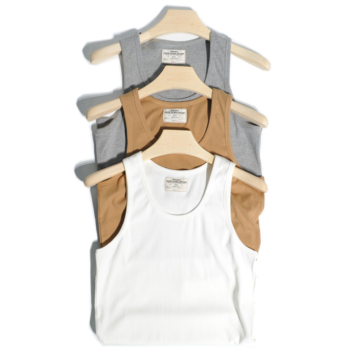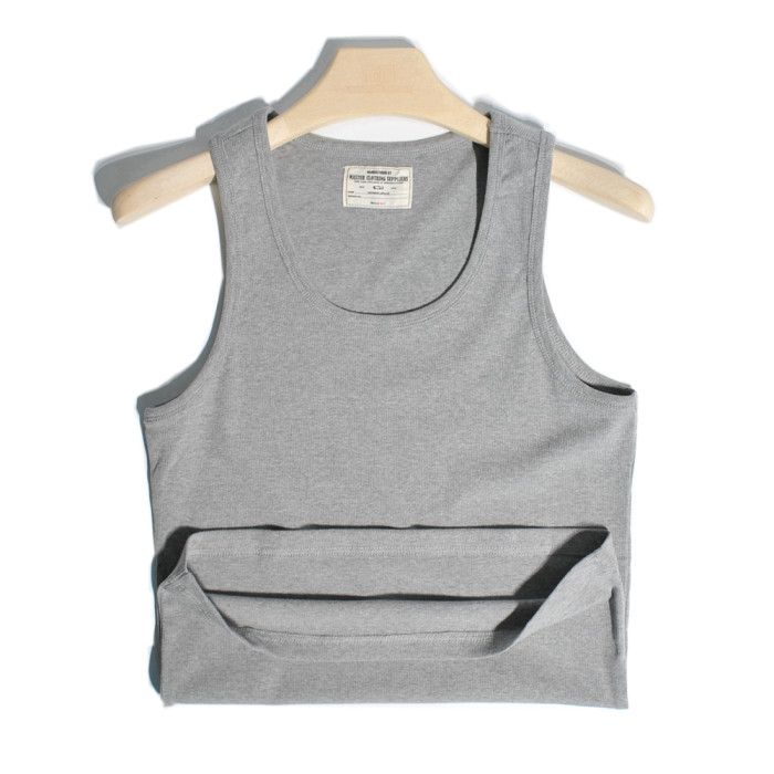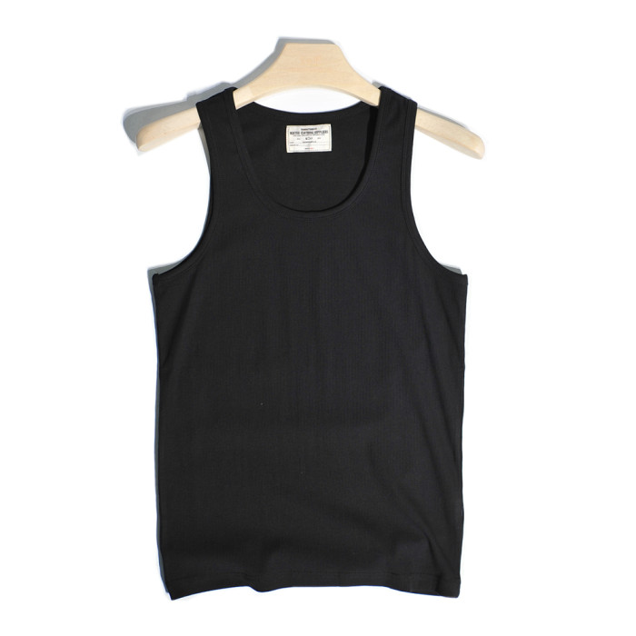 重磅美式硬漢哢嘰復古螺紋彈力修身純棉背心運動健身打底汗衫男女