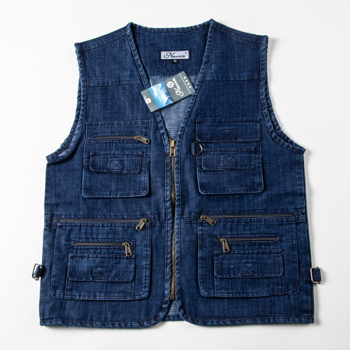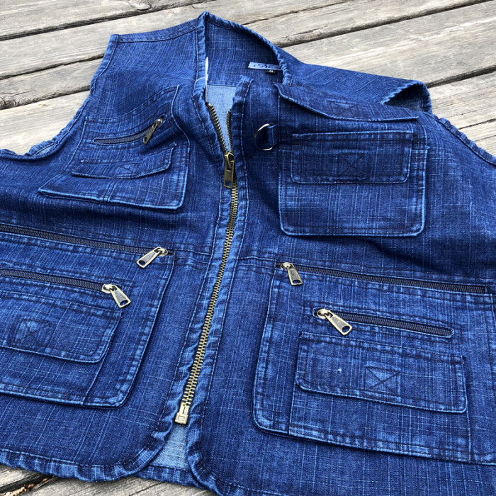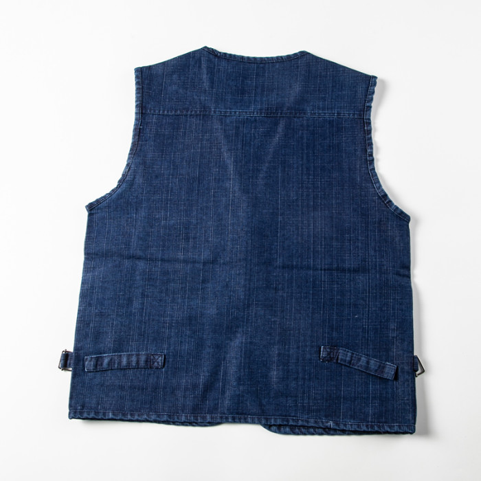 美式復古水洗做舊寬松牛仔馬甲男女街頭多口袋百搭坎肩外套