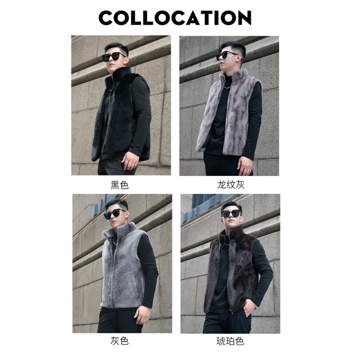 馬甲冬季男外穿立領保暖皮草仿水貂皮毛一體加厚貂絨外套倆面穿潮