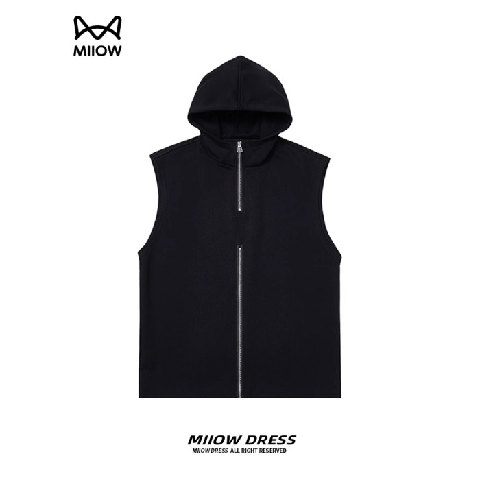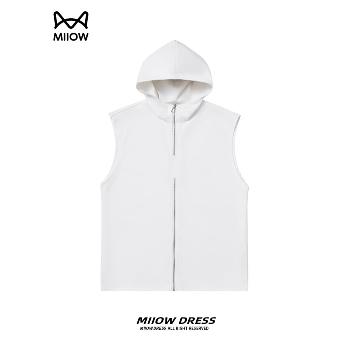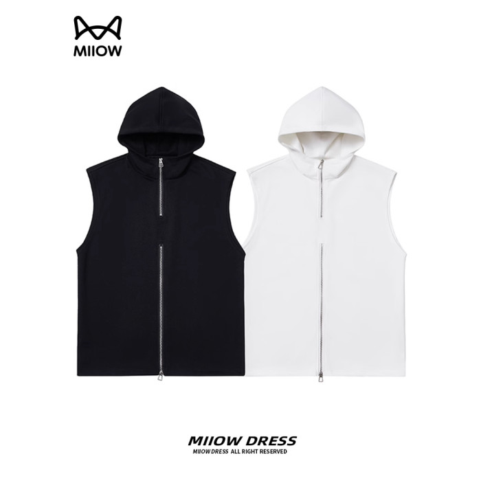 貓人美式雙拉鍊連帽背心男款夏季設計感高街無袖T恤寬松痞帥外穿