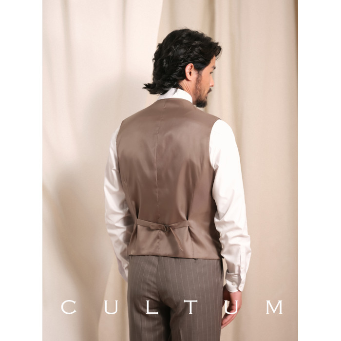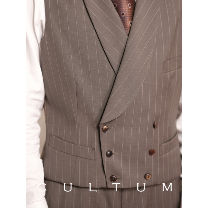 【澳洲羊毛】CULTUM復古銀行家竪條紋青果領雙排釦婚禮西服馬甲男