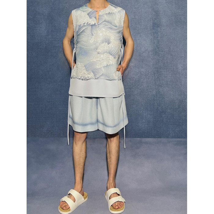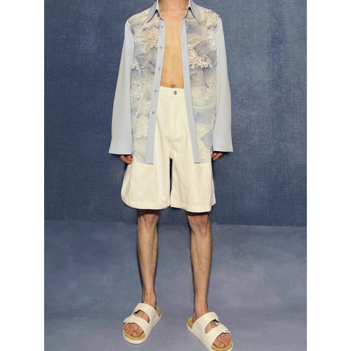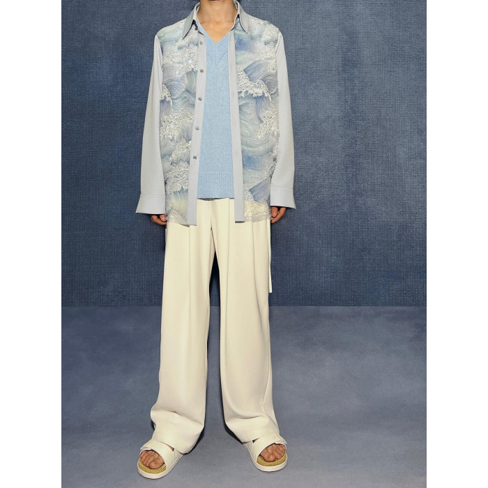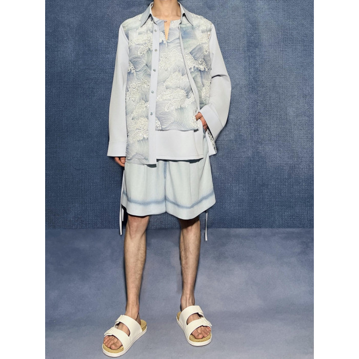 7D SEVENDAYS「藍夢星辰」重工立體釘珠國風盤綉新中式長袖襯衫男