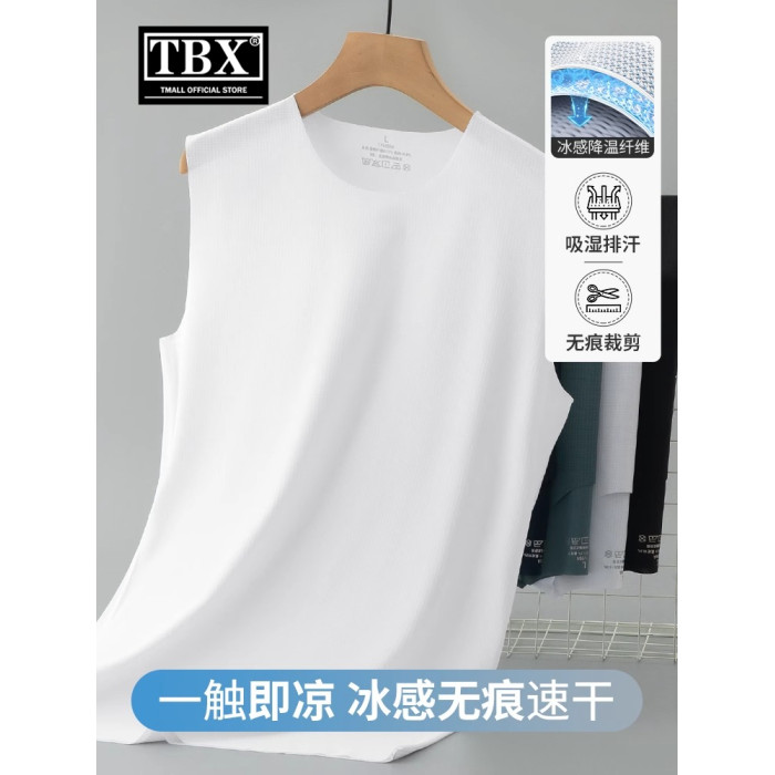 高級冰絲背心男士2025新款夏季運動無痕速乾坎肩白色無袖t恤男款