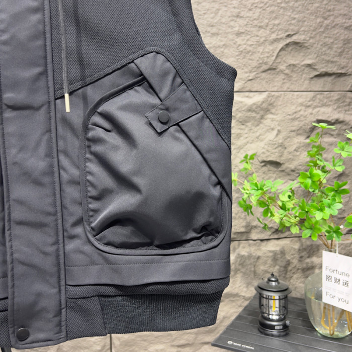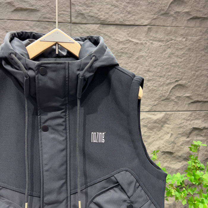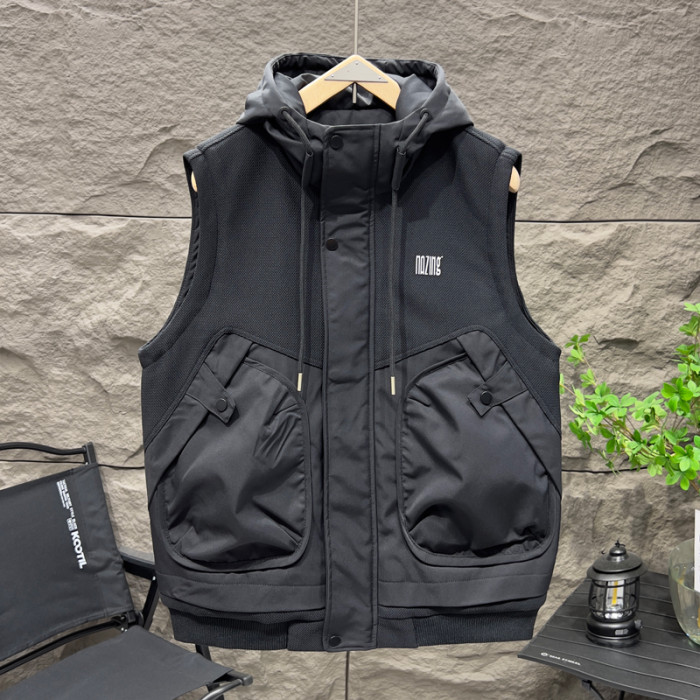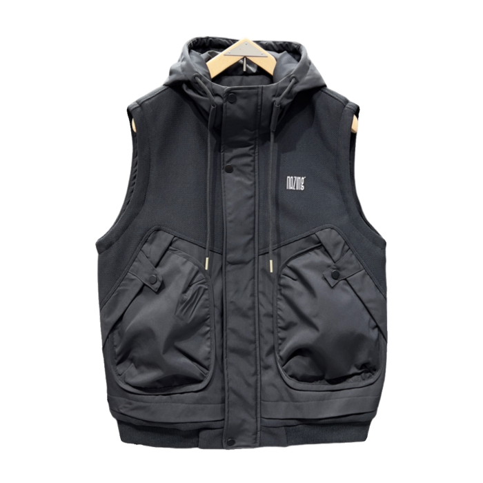 春秋新款針織加棉拼接連帽馬甲男修身青年痞帥工裝百搭休閒外套男