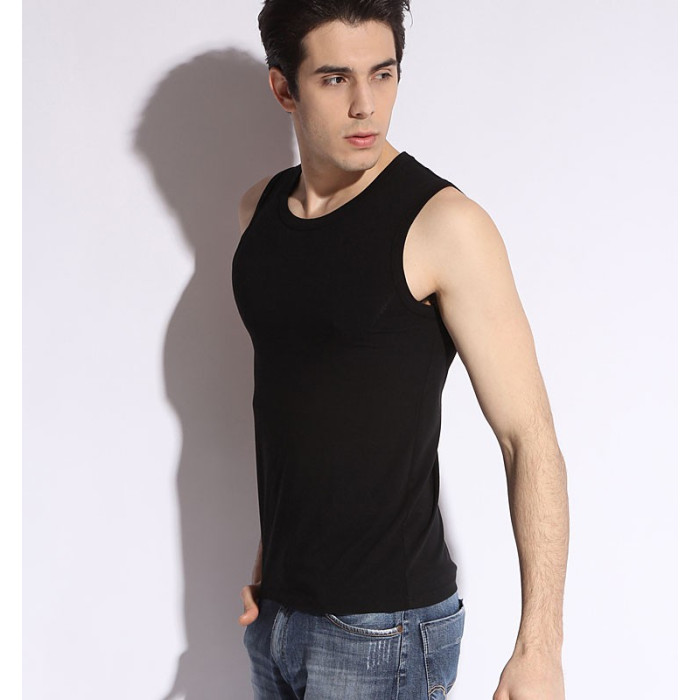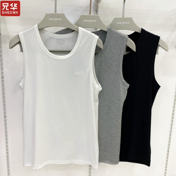 兄華夏季男士運動寬肩汗衫純色彈力莫代爾棉修身坎肩打底背心6621