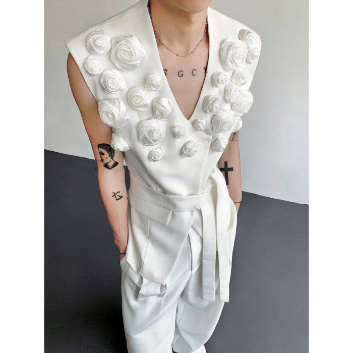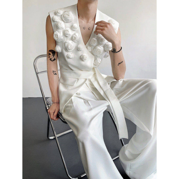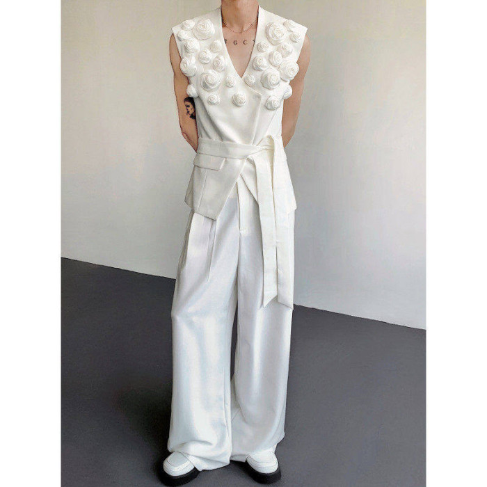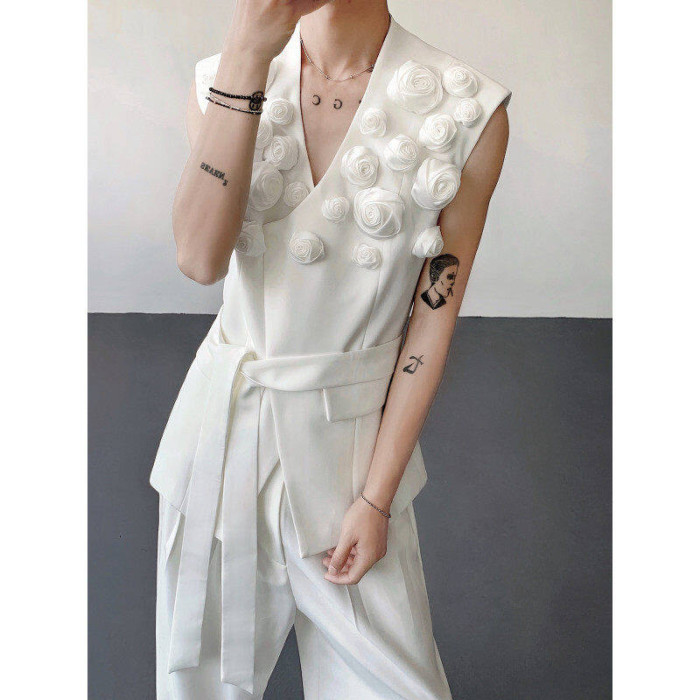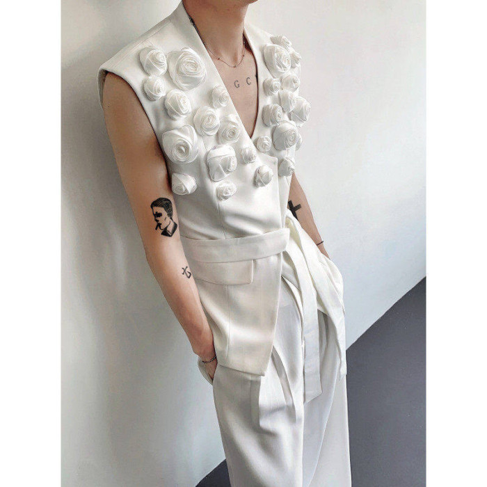 輕熟風小衆不對稱設計感百搭無袖西裝馬甲男高級髮型師坎肩外套潮