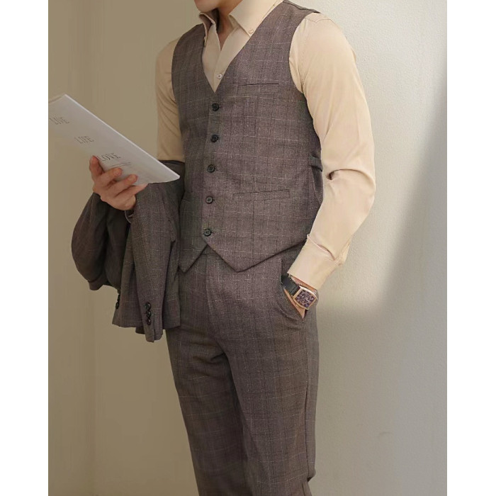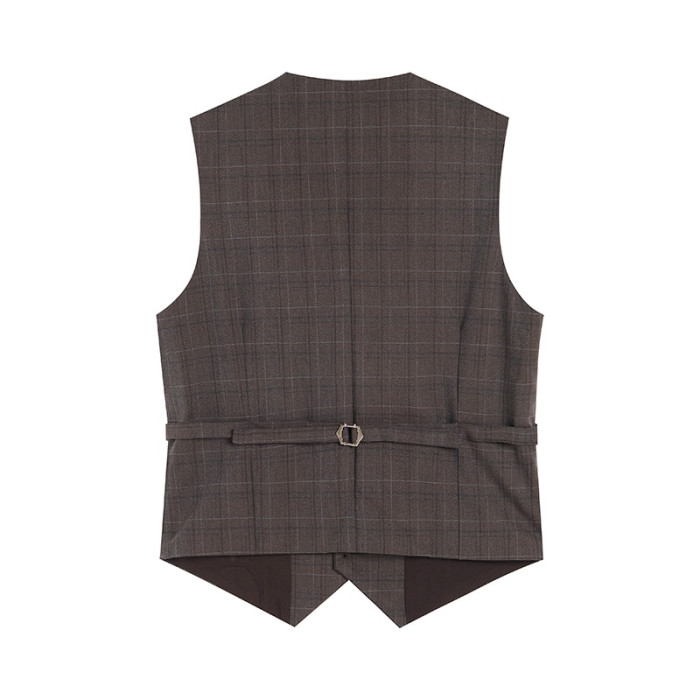 2024新款紳士格子復古國民風男裝馬甲商務修身帥氣格紋西裝馬夾