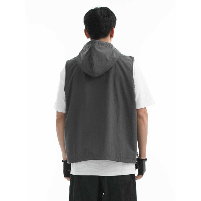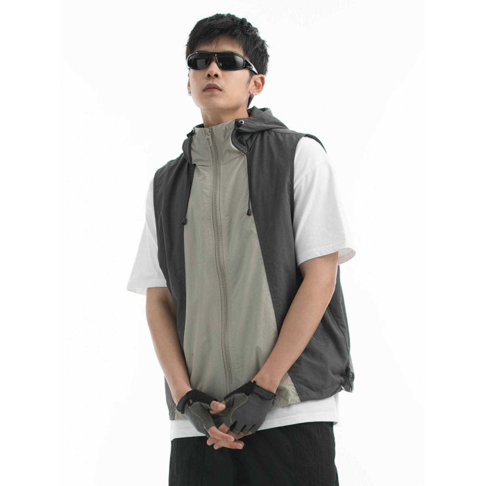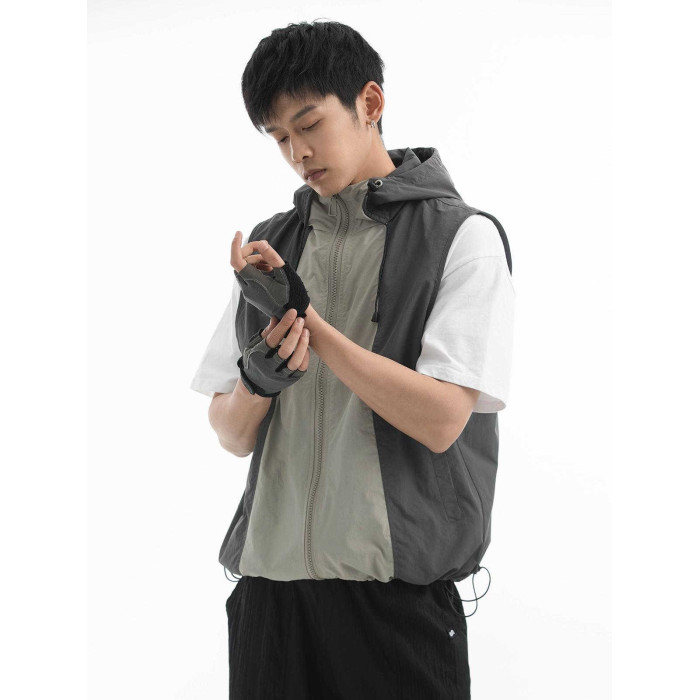 NotBrand機能風撞色拼接連帽馬甲男春裝戶外騎行運動寬松無袖外套