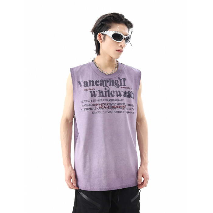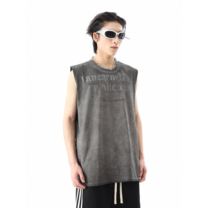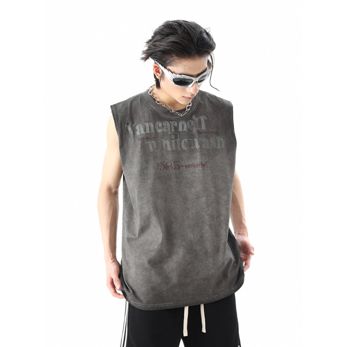 美式復古水洗純棉坎肩背心男夏潮流痞帥cleanfit寬松運動無袖T恤