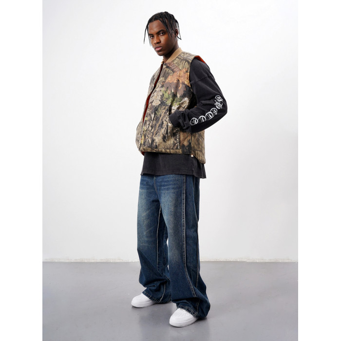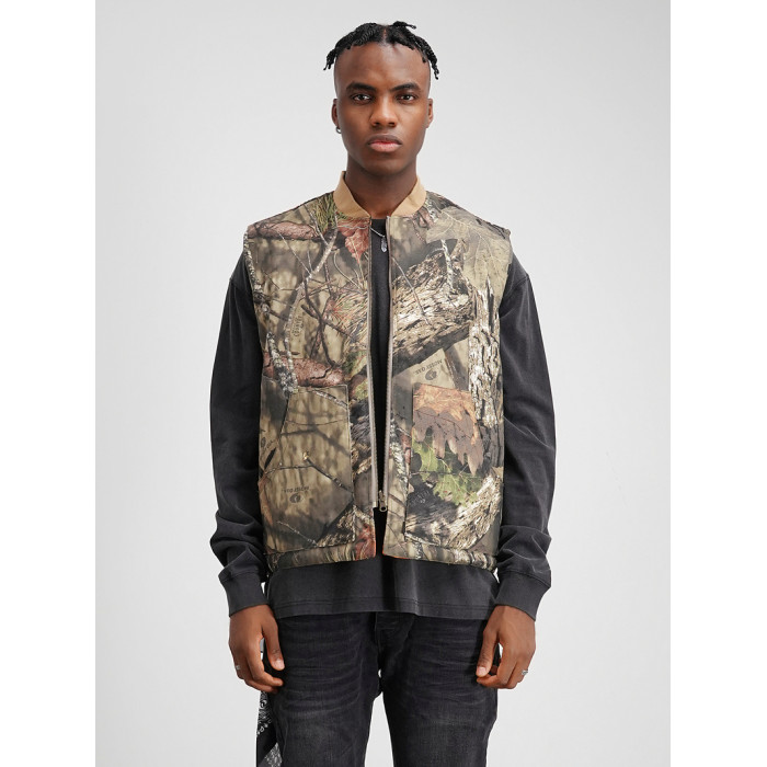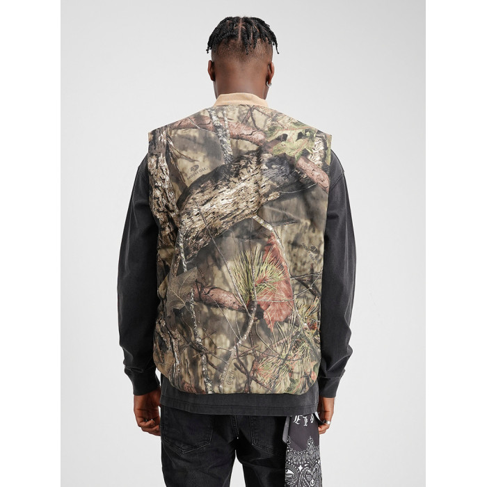 SLATT 美式街頭風 獵裝樹枝樹葉迷彩寬松廓形雙面穿夾棉馬甲