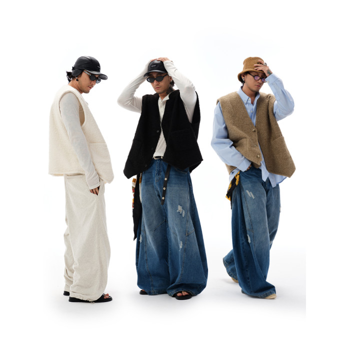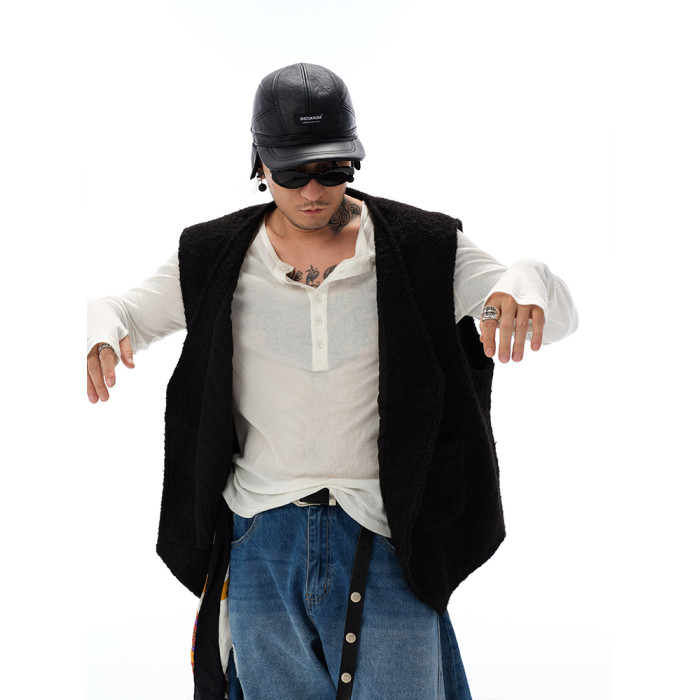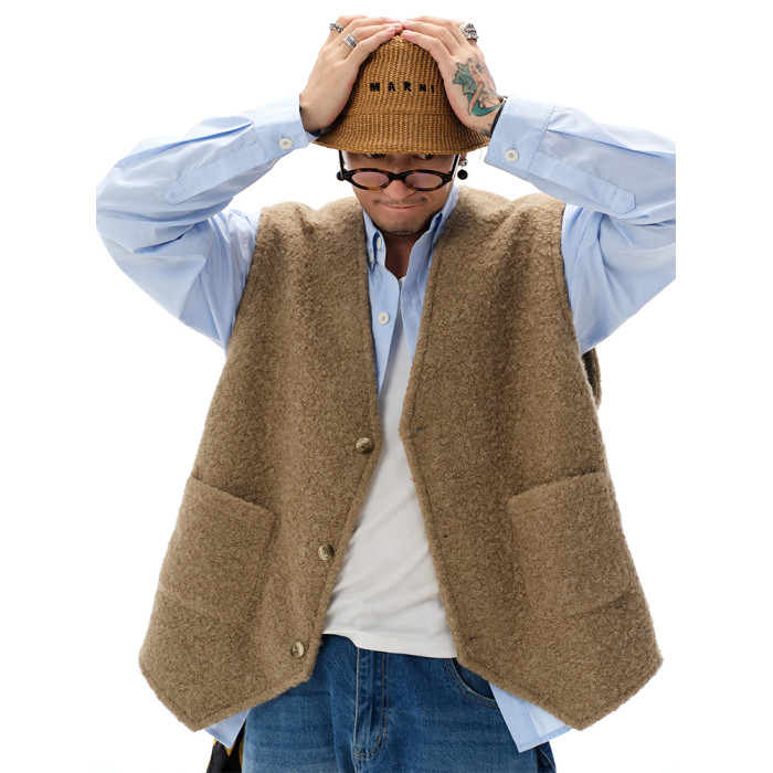 Shizukaumi24aw慵懶舒適保暖好穿羔毛廓形馬甲男外穿馬夾外套秋冬