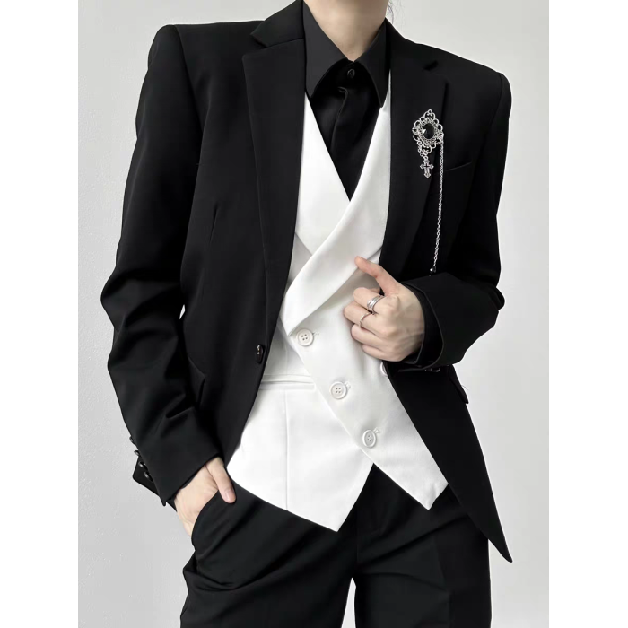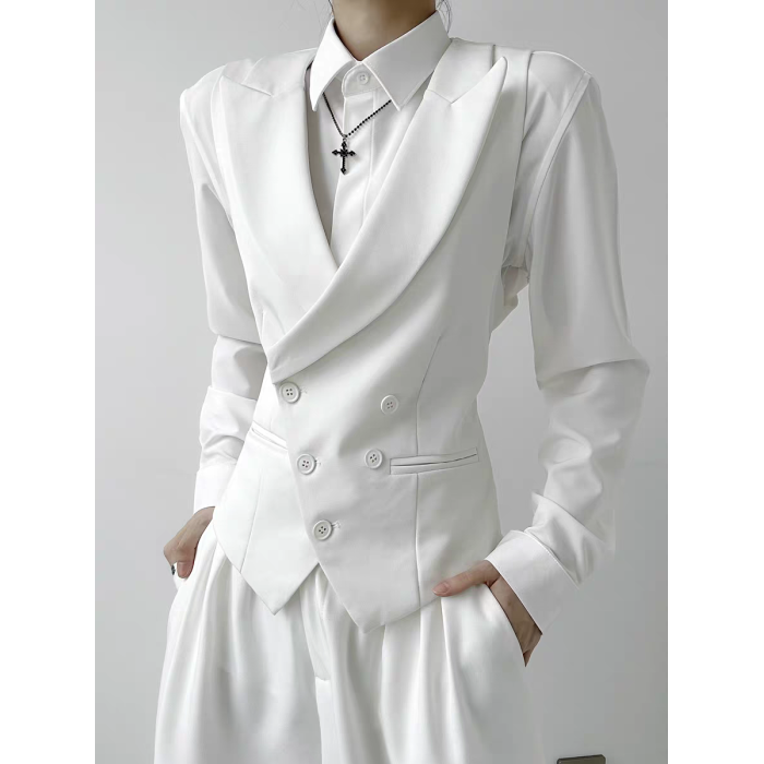 輕熟風簡約商務西服馬甲套裝男設計感雙排釦馬甲帥氣伴郎新郎西裝